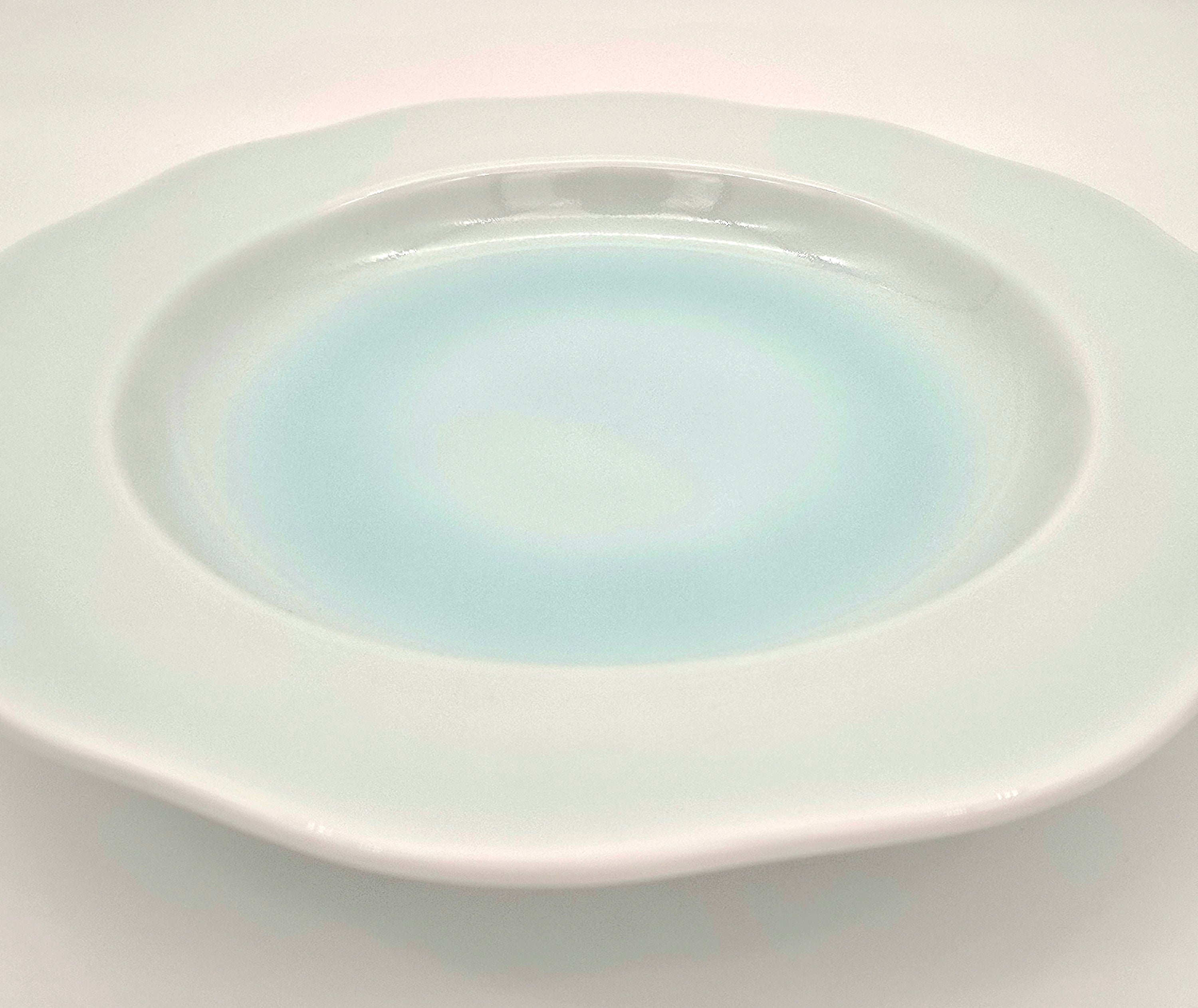 The light teal colour is made from natural minerals sourced from Okawachiyama, the official kiln village of the Hizen Nabeshima Domain. Over 300 years ago, the Nabeshima clan relocated to this area in search of celadon porcelain stone — a tradition that continues to this day. The result is a celadon porcelain renowned for its serene, jade-like luster and graceful, translucent blue-green hue that exudes timeless elegance and quiet beauty.